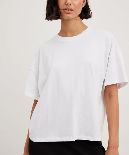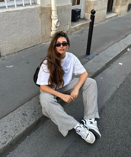 Zei iemand daar weekend? Op vrijdag kiezen we voor een outfit waarmee je gelijk ready bent voor de vrijdagmiddagborrel. Negin gaat hier voor een croptop maar voor een work-approved outfit is een basic wit t-shirt een betere optie.