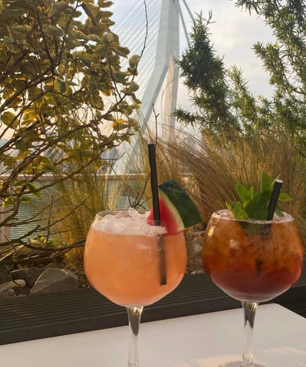 Culinair genieten met een uitzicht waar je u tegen zegt. Geniet van heerlijke hapjes en cocktails terwijl je uitkijkt op de Erasmusbrug bij Gastrobar Elvy, op het dak van het nhow hotel.