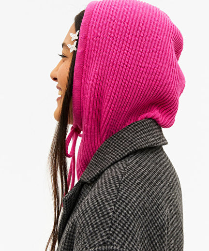 Dubbele trend: de balaclava zien we steeds vaker in het straatbeeld en door 'm in het felroze te dragen ben je helemaal on trend (en niet te vergeten lekker warm). Fashionista who?