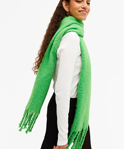 Groen is toch wel één van onze favoriete kleuren. Deze sjaal in een felle tint is perfect om elke outfit een vrolijke twist te geven.