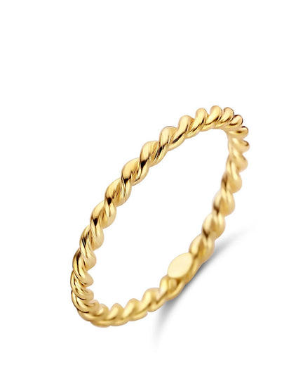 Simpel en delicaat, maar zeker niet minder bijzonder. Deze smalle ring heeft een stijlvol gevlochten uiterlijk en is met goud verguld. Daar het subtiele uiterlijk is 'ie perfect te combineren met andere ringen voor een mooie ring party aan je vingers.