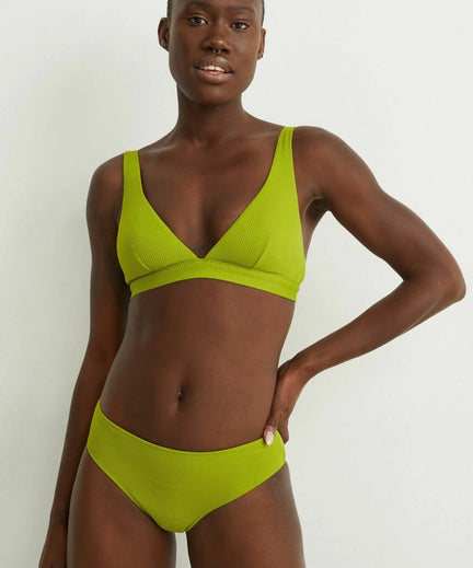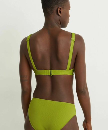 Deze kleur groen is onmisbaar in je kledingkast deze zomer en dus ook een bikini in deze kleur mag niet ontbreken. De top heeft verstelbare bandjes en is voorgevormd.