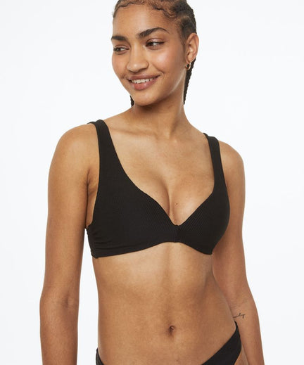 We hebben allemaal een goeie basic bikini nodig die onze twee vriendinnen wat beter uit laat komen. Deze push-up bikini van H&M is daardoor een hele goeie aankoop voor deze zomer. Mocht je liever voor een kleurtje gaan, is deze er ook in het groen, babyblauw, oranje, donkerblauw en turkoois.