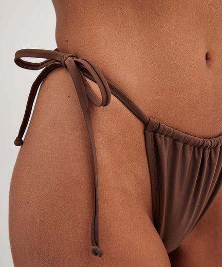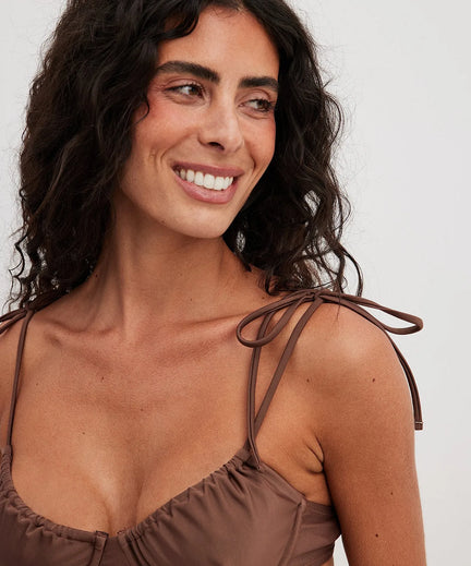 Deze bikini van NA-KD is een perfecte toevoeging aan je bikini-verzameling. Vrij basic, maar toch nét een beetje anders. De top is net als een bh voorzien van een beugel en is verstelbaar met de koordjes. Wij zijn fan van de kleur bruin maar mocht je toch liever een andere kleur hebben is deze er ook in het zwart, blauw, geel of bloemdessin.