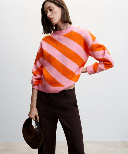 Een beetje kleur kan geen kwaad en oranje met roze is de perfecte combi. Draag m op een jeans met stoere boots en je bent good to go.
