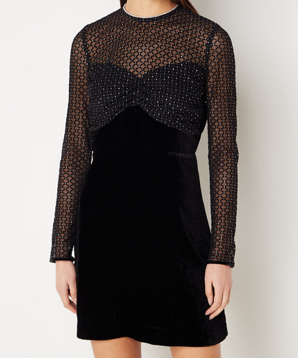 Well hello gorgeous! Met deze jurk steel jij hoe dan ook de show. De jurk is gemaakt van fluweel en heeft pofmouwen en strass steentjes. Maak je look af met basic zwarte hakken en je haar opgestoken. All eyes on the dress!