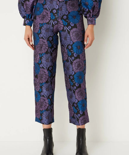 Leg je liever de focus op de onderkant? Combineer dan deze mooie pantalon met jacquard print met een klassieke zwarte top. Of draag 'm met de matching blouse. Ze zijn nu allebei in de sale en prima door te dragen naar kantoor of een diner.
