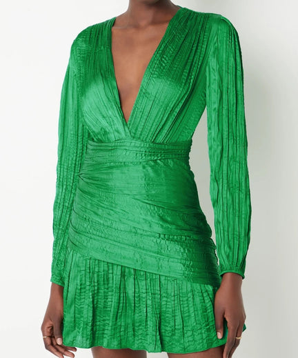 Kies je liever voor kleur dan glitter? Dan is deze mini jurk met v-hals iets voor jou. Dit getailleerde exemplaar heeft een prachtige groene kleur waarmee jij sowieso de show steelt tijdens alle feesten en partijen.