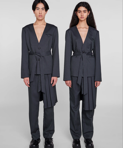 De blazer met krijtstreep zien we veel voorbijkomen en deze is net even anders. Het ceintuur en de neongroene krijtstrepen maken de blazer echt uniek en daarnaast is de blazer unisex.