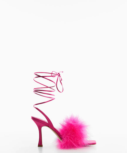 Wil jij jouw outfit opfleuren met extra schoenen? Dan zijn dit de stappers voor jou. Deze knalroze exemplaren hebben niet alleen straps voor rond je benen, maar ook een gezellig bontje van veren. Hiermee steel jij zeker weten de show.