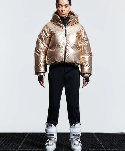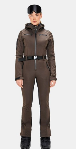Bruin is dé kleur van dit seizoen. Wij zien dus geen reden om niet in deze kleur van de piste af te gaan. Het pak heeft een slanke, vrouwelijke pasvorm en is gemaakt van waterafstotend materiaal.