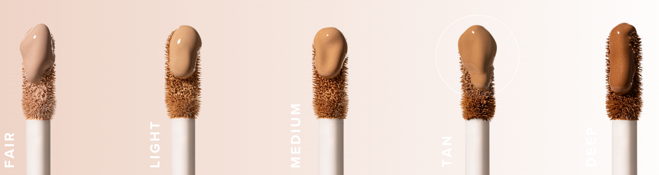 De concealer is beschikbaar in vijf tinten. Kies een kleur die dicht bij jouw huidskleur ligt of net iets lichter om donkere kringen te verbergen en je huid op te lichten.