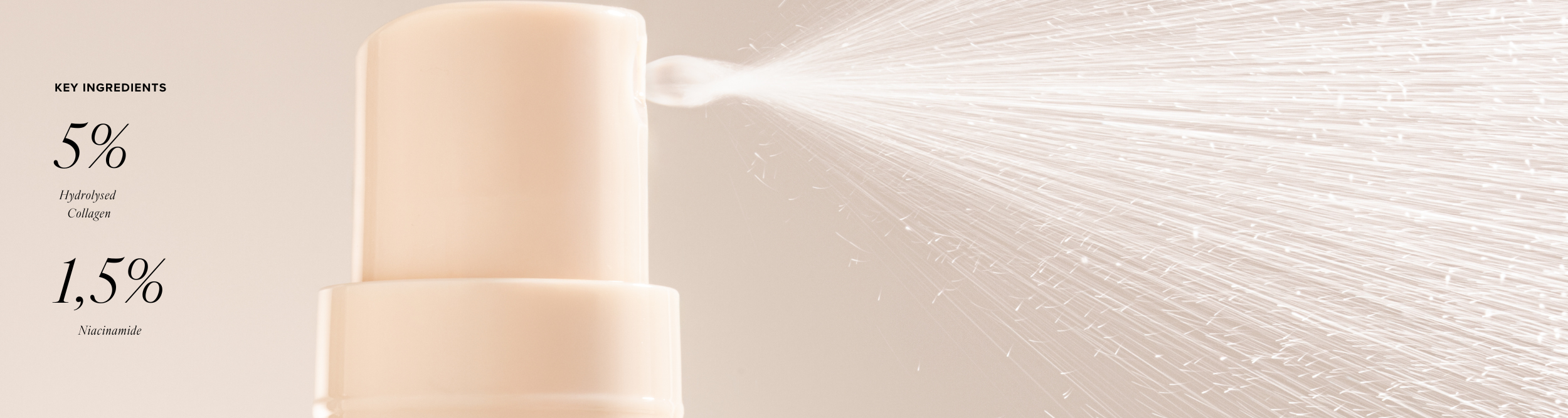 De formule met 5% gehydrolyseerd collageen, niacinamide, druivenpitextract en hyaluronzuur geeft een intens resultaat vanaf de eerste spray. Dankzij ingrediënten die écht werken, verbetert de huid zichtbaar op de lange termijn. Dofheid wordt aangepakt, terwijl de huid er voller, gladder en natuurlijk stralend uitziet. Deze fijne collageen gezichtsmist is dé ultieme dorstlesser voor je huid en past perfect in elke routine. Bang voor een plakkerig gevoel? Niet nodig. De spray voelt licht aan.