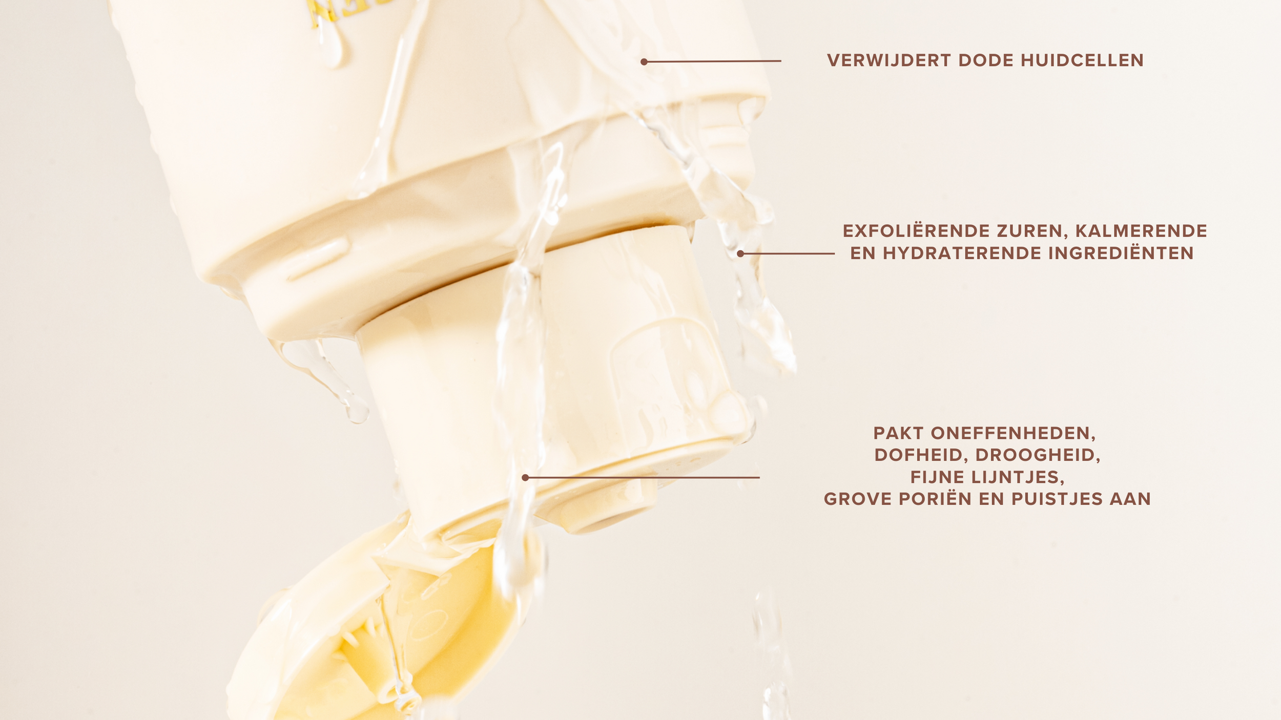 - Verwijdert dode huidcellen voor een directe glow en een egale huid