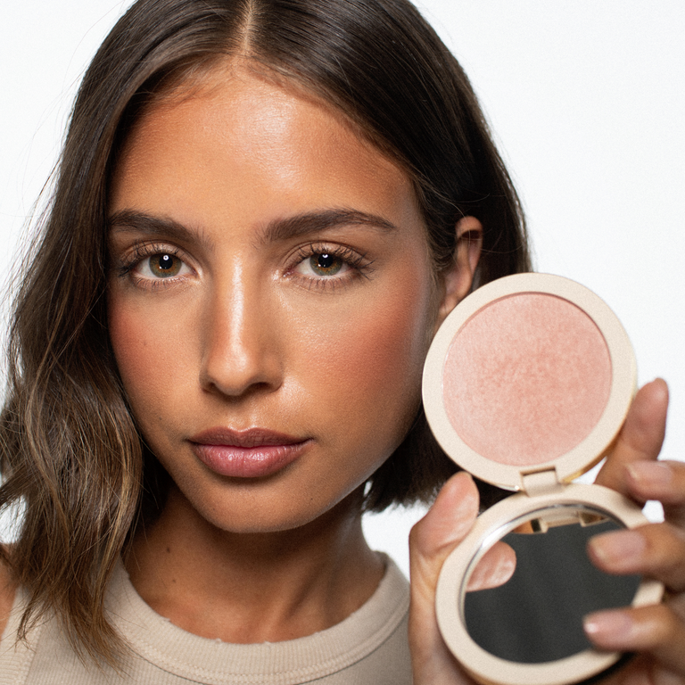 We raden aan om een poeder blush op een poederbasis aan te brengen. Wanneer je foundation of CC Cream hebt aangebracht kun je daarna het beste even afpoederen met een ‘setting powder’, zoals de Loose Mattifying Powder. Hierna breng je de blush aan en fixeer je deze met de Mist en Fix setting spray.