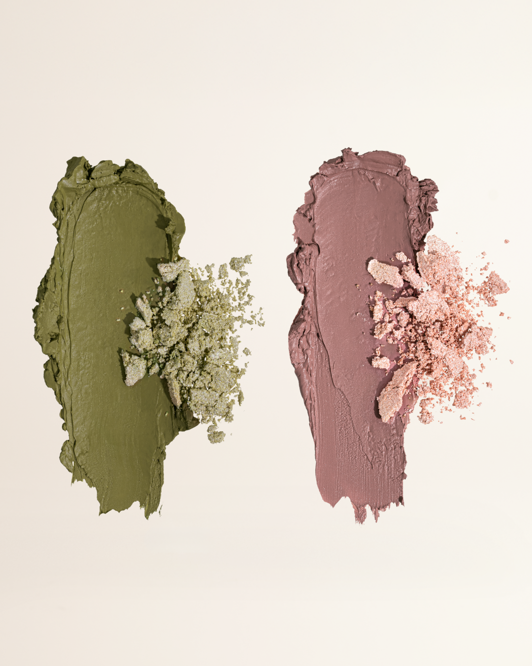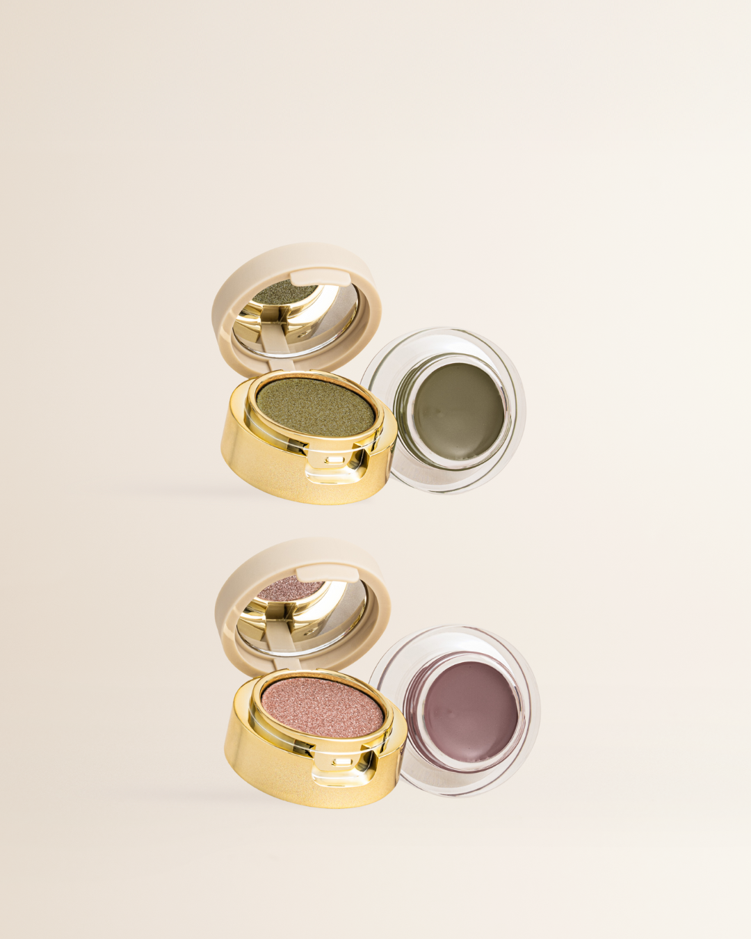 Breng de cream eyeshadow rechtstreeks aan op je oogleden met je vingertop of een platte kwast voor een egale, gladde basis. Vervaag de randen zachtjes voor een naadloze finish. Breng daarna de shimmer powder aan met een schone vingertop of een zachte kwast om extra glow en dimensie toe te voegen. Wil je meer intensiteit? Bouw de kleur eenvoudig op tot je de juiste hoeveelheid sparkle hebt bereikt.