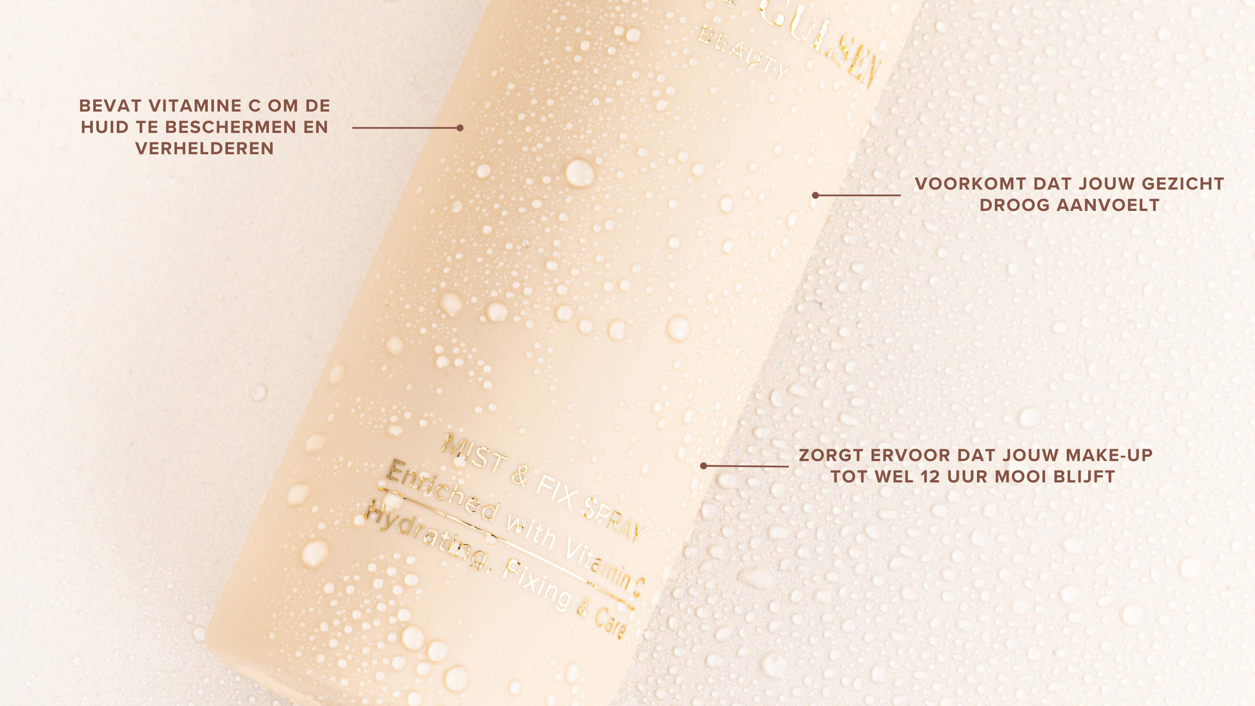 De formule is lichtgewicht en voelt aan als een zachte nevel op je gezicht. Perfect als skincare spray voor onder én over make-up.