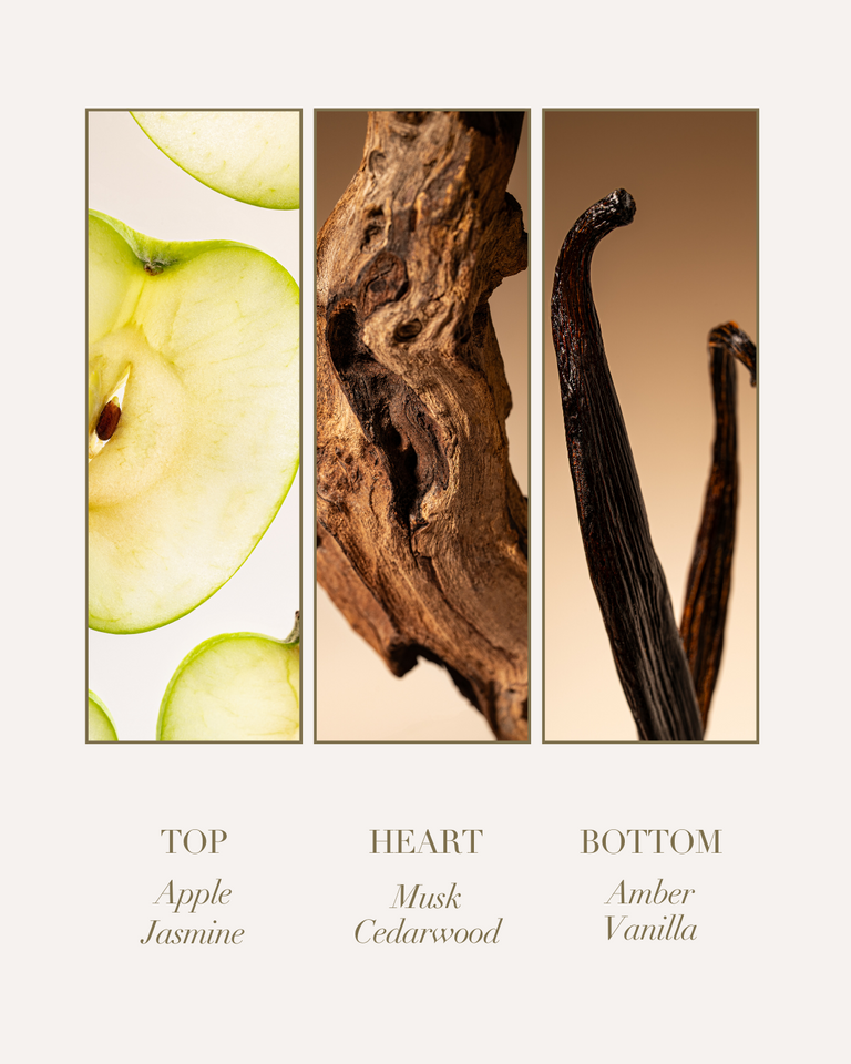 De geur opent met een frisse, vrouwelijke explosie van sprankelende appel en een vleugje delicate jasmijn. Naarmate Vivre zich ontwikkelt, onthult het een romige mix van sensuele musk en zacht cederhout, wat zorgt voor een diepe, verleidelijke geurlaag met een fluweelzachte finish. De warme basis van amber en vanille versmelt met je huid en creëert een onweerstaanbare, lange houdbare geur met een subtiel second skin effect.