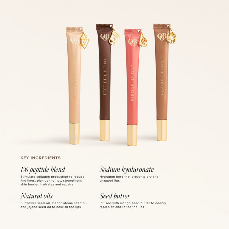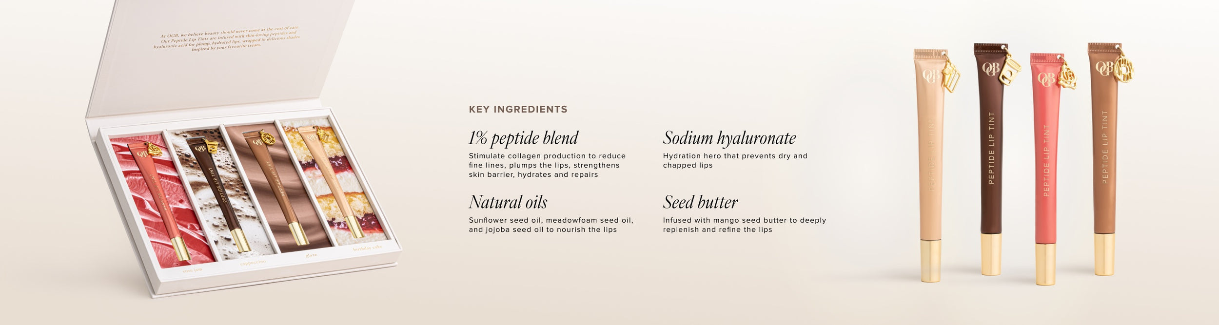 De OGB Peptide Lip Tint Box is de ultieme sweet treat voor je lippen en bevat vier shades: Cappucino (koffiebruin), Glaze (warm rozebruin), Rose Jam (perzikroze) en Birthday Cake (zacht champagne). Oftewel, voor elke mood de perfecte lip tint.