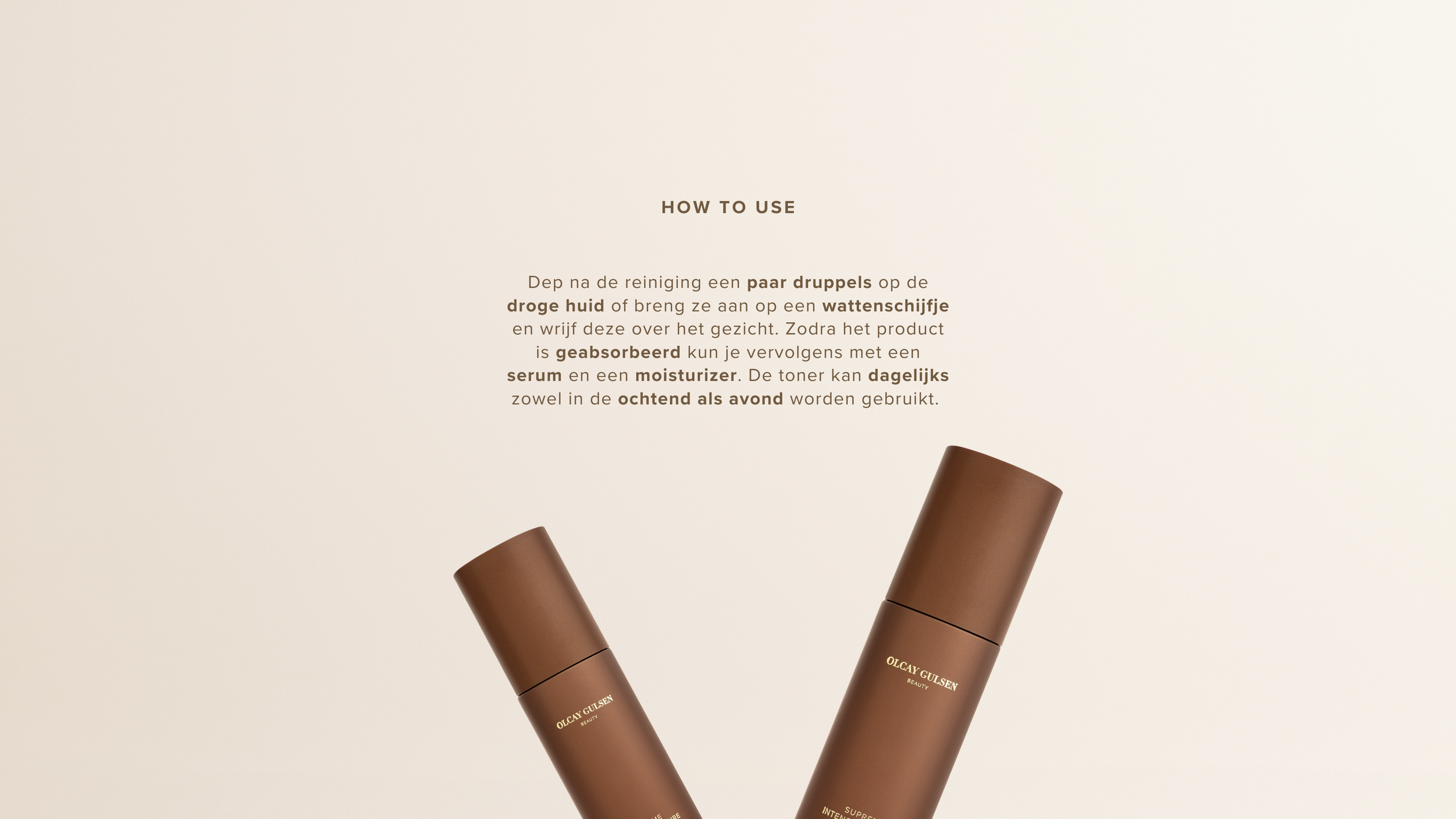 Breng na de reiniging een paar druppels direct op de huid aan of gebruik een wattenschijfje om het product over het gezicht te verdelen. Wacht tot het volledig is geabsorbeerd en vervolg met een serum en moisturizer.