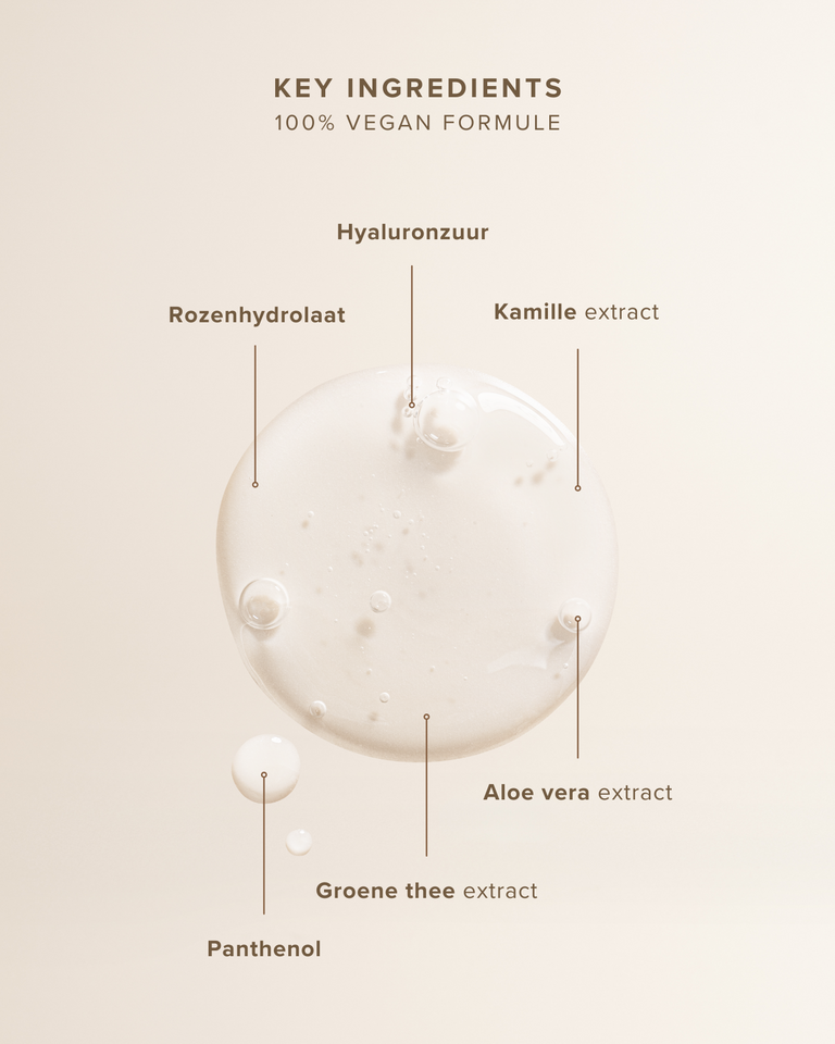 Deze lichte, alcoholvrije toner voor gezicht wordt direct opgenomen door de huid en is samengesteld met krachtige, natuurlijke ingrediënten. Hyaluronzuur zorgt voor een diepe hydratatieboost, terwijl rozenwater, groene thee en aloë vera een kalmerende, herstellende werking hebben. Dankzij witch hazel wordt de pH-waarde van je huid hersteld, waardoor andere skincare-producten beter worden opgenomen. Niacinamide, hét ingrediënt voor een egale huid, verfijnt de poriën en verbetert de huidtextuur. Daarnaast verstevigen peptiden de huid en stimuleren ze de collageenproductie – een must voor wie op zoek is naar een verhelderende toner die ook fijne lijntjes aanpakt.