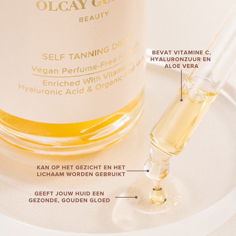 Met de Olcay Gulsen Beauty Tanning Drops geniet je het hele jaar door van een gouden glow. Slechts een paar druppels geven je huid een stralende touch en voegen op een subtiele manier warmte toe aan je teint. Als een stranddag in een flesje geven deze self tan drops je gezicht en lichaam een natuurlijke, gezonde tan zonder vlekken of oranje gloed.