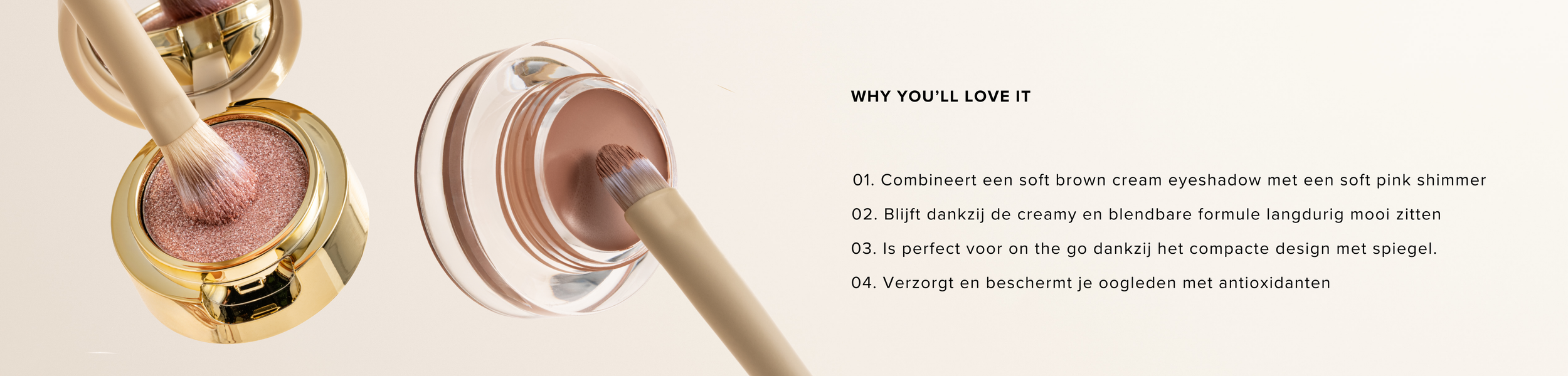 Met de Nourishing Lip Oil in Ballerina geef je je lippen in één swipe een bright pink glow, terwijl verzorgende ingrediënten helpen tegen droogheid en velletjes. Combineer ’m met de One & Done Eyeshadow in Satin Glow voor een zachte bruine ooglook met een subtiele roze shimmer.