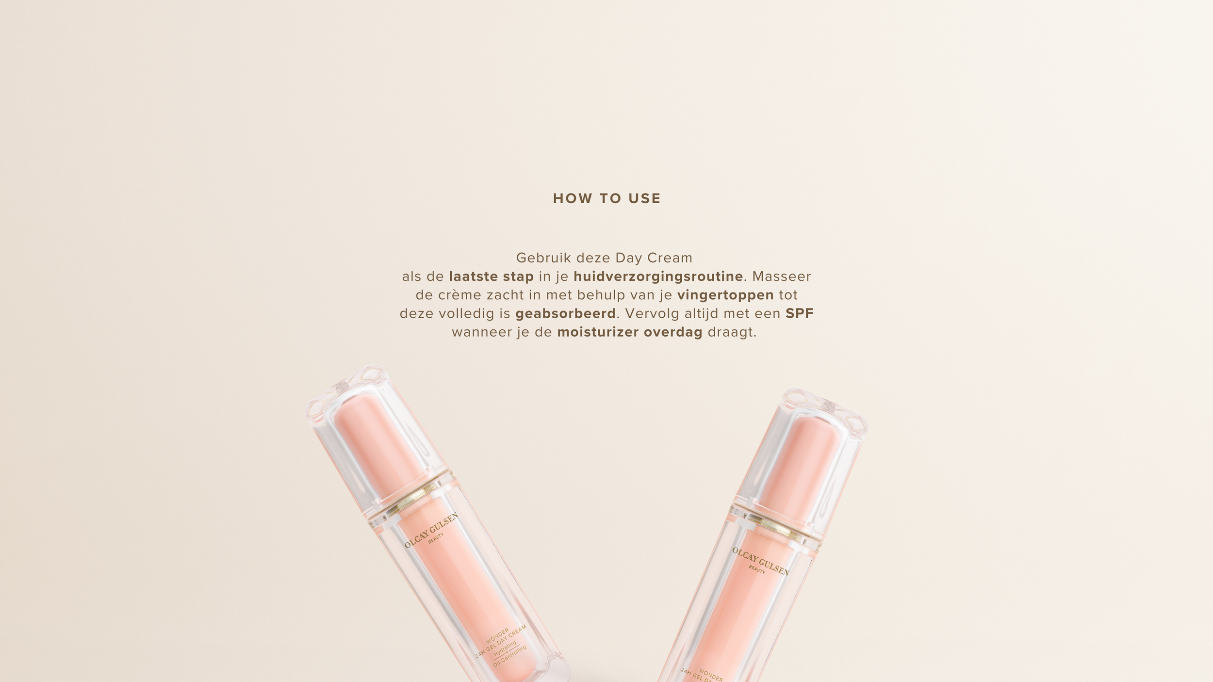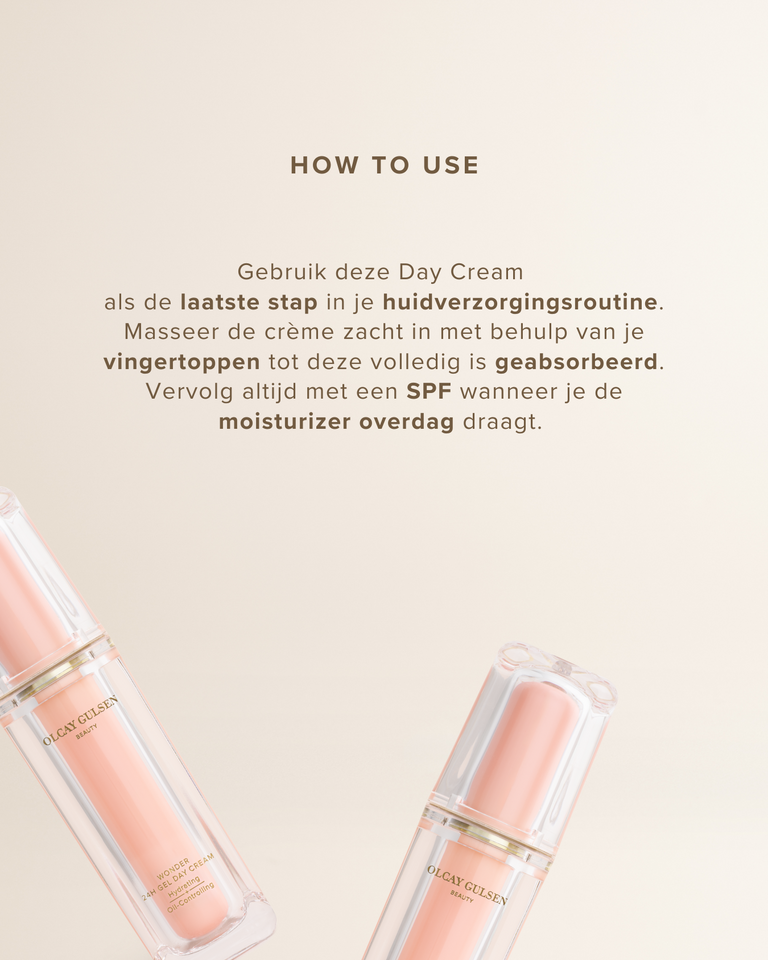 Gebruik de Wonder 24H Gel Day Cream als de laatste stap in je huidverzorgingsroutine. Masseer de crème zacht in met behulp van je vingertoppen tot deze volledig is geabsorbeerd. Vervolg altijd met een SPF wanneer je de moisturizer overdag draagt.