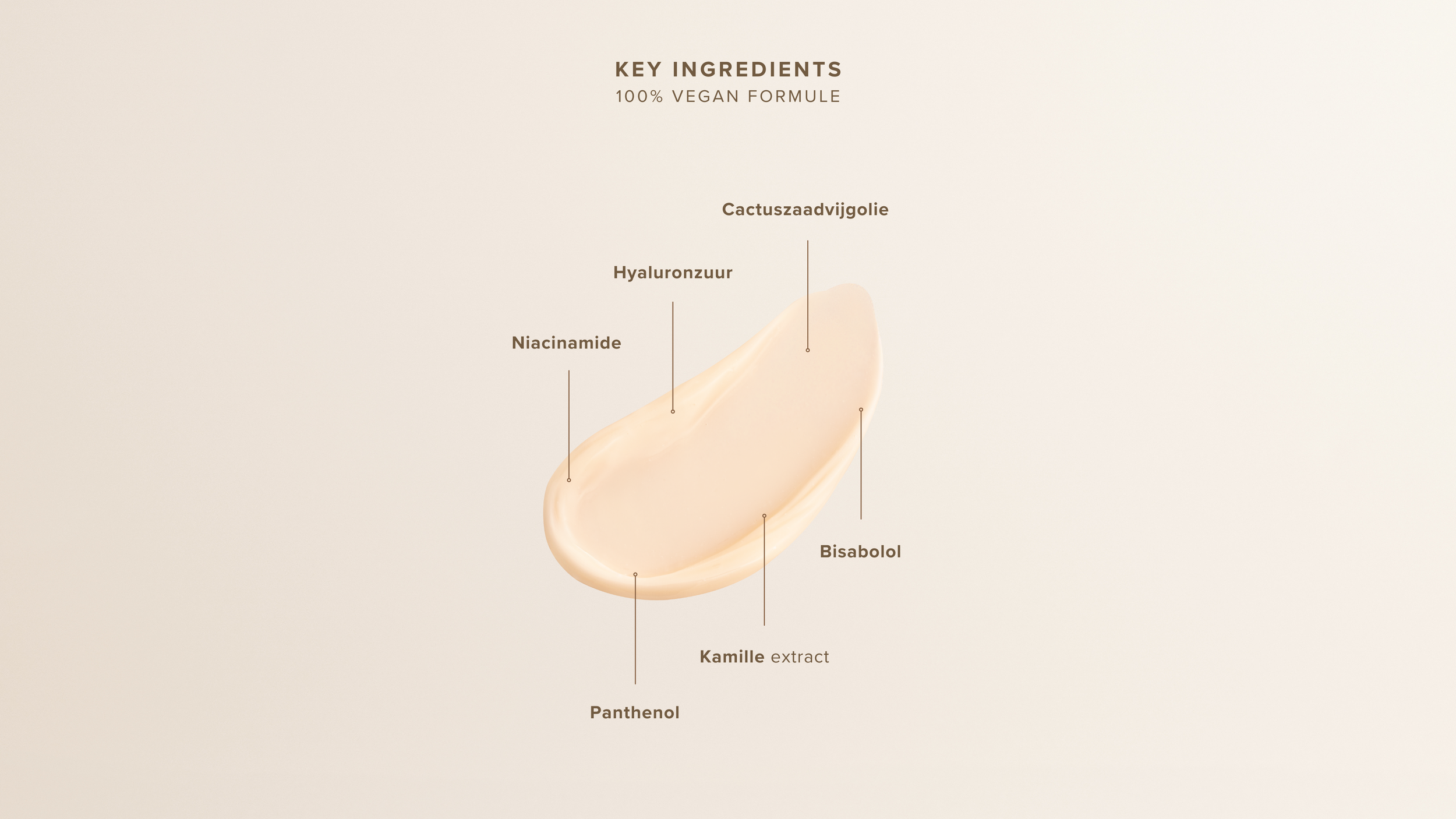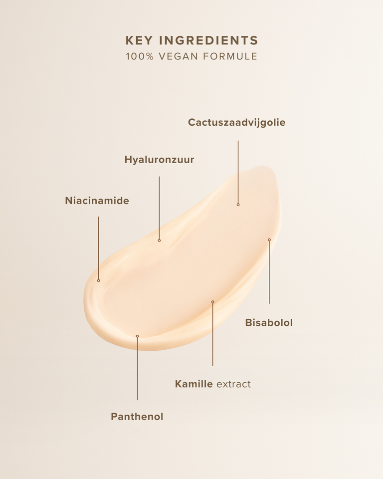 De toevoeging van bisabolol zorgt voor een ontstekingsremmend effect dat puistjes helpt voorkomen en cactuszaad vijgenolie (een zeldzame olie die wél geschikt is voor de vette huid) werkt als krachtige antioxidant én talgregulator. Samen vormen ze de perfecte balans voor een zuivere, egale en gladde huid.